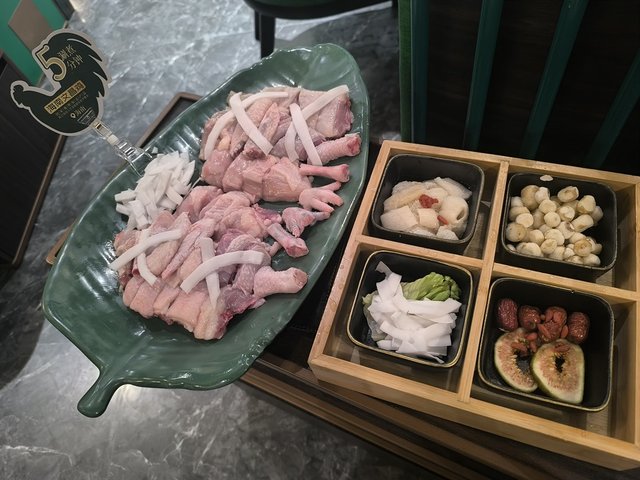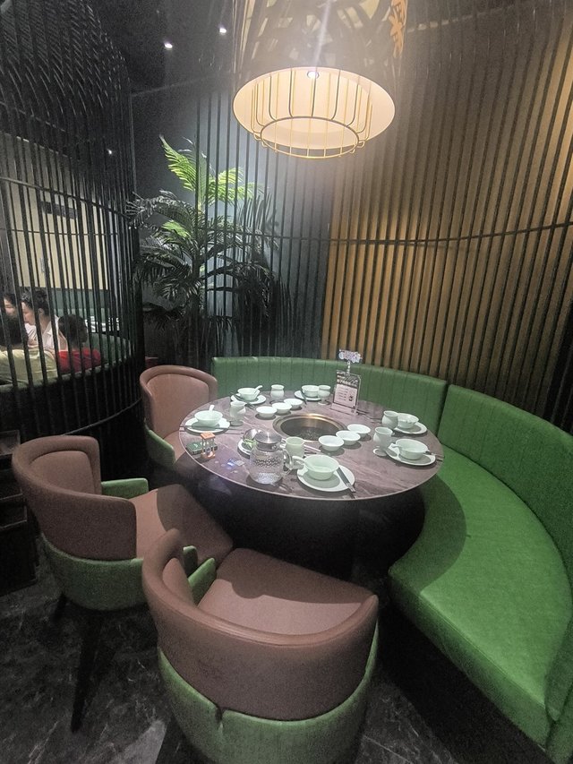 餐廳環境以綠色為主跟餐廳名”四季椰林🌴🌴🥥🥥”好搭配, 而且軟軟的圓形卡座也十分舒服, 一家大細或朋友聚會圍圈坐, 感覺十分熱鬧及溫馨.服務員也有禮貌,態度良好及細心. 上菜時會簡單介紹及提醒先飲一碗椰子雞湯. 我們4大2小~6人選了一個4人餐($355):~ 竹笙馬蹄椰子雞🐔(一隻雞的分量)~火山肥牛🐂 ~ 餐廳將一碟肥牛以雪山裝飾上檯,但是牛肉味道不太濃.~手打黑虎蝦滑🦐 ~ 蝦肉彈牙~伊比利亞黑豬肉🐷 ~ 餐廳將一碟豬肉以雪山裝飾上檯,味道一般.但是都算嫩滑.~鮮活水培菜 ~ 生菜在水種的食之前店員會幫忙剪段根部直接放鍋內煮.~金牌臘味煲仔飯 ~ 臘味飯味香, 有少少飯焦. 脆卜卜😋~風味黑糖茄子 ~ 單單看外表完全看不出是炸茄子, 脆皮外層加上少少黑糖醬(味道不算太甜).另外,再加配以下小食及飲品:~蔬菜拼盤🥬 ($26)~ 除蔬菜外還有幾塊粟米🌽.~鮮珍山菌拼盤🍄🟫($29)~ 有4款不同菌🍄🟫(牛肝菌,雞樅菌,鹿茸菌,绣球菌)~手工脆網蝦卷($19)~ 賣相好似幾好但是味道一般😅~椰青($18)~ 朋友喝清甜~海南鮮榨椰子汁🥥($16)~我覺得味道好好又不太甜😋~海南清補涼($9.9)~ 小朋友喜歡吃總結, 這餐火鍋的海南椰子雞🥥🐔(竹笙馬蹄椰子雞)真是好好味, 性價比算高, 適合一家人及朋友歡聚的好地方.…查看更多