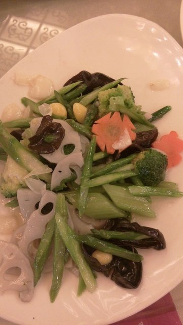 四季雅苑,清朝时蔬各种颜色的蔬菜搭配在一起,既有营养又非常好看,白色的藕片薄而脆,鲜艳的胡萝卜切的挺有创意,翠绿的西芹和西兰花,还有黑色的木耳,不同的颜色,口感也不一样,很丰富的一道菜。清蒸鲈鱼味道很是鲜美,鱼的表皮非常完整,在鱼周围淋了酱汁,拨开鱼皮,里面的鱼肉很洁白,用筷子夹一点鱼肉沾一些酱汁放在嘴里,鱼肉的细嫩鲜香跟酱汁的鲜美结合在一起,特别美味。Read More