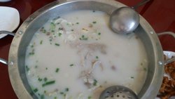 第一次和朋友来到这里吃羊汤,朋友对羊肉还是比较排斥的,但是这里的羊汤却比较符合他的胃口和口味,因为羊汤并没有一丝一毫的腥膻味道,反而是很浓郁的肉汤味道,特别的好喝,汤里面被撒上了些许的胡椒粉,使得入口后胃里面热乎乎的,特别暖和,在寒冷的冬天吃一碗羊汤应该是很幸福的事情,里面的内容非常丰富,各种的羊杂碎和羊肉混合在一起,口感丰富。查看更多