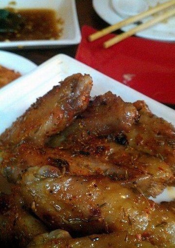 四条印象之蚝酷,东四四条的地界基本还算好找,但若想在这里找到停车位完全得靠运气,比方像饿这样的人有福之人不用愁,哈哈。大厅是非吸烟区,里间小些的是吸烟区。善于经营的老板忙不迭的招呼大家,安排客人,远比服务小弟的热情高涨很多。新鲜的生蚝配上蒜茸,在炭火上烤制后芳香四溢,端上桌后还吱吱冒油,确实诱人。一口下去,满嘴鲜汁,并夹带着蒜茸特有的香味,满足感油然而生。烤鸡翅算副业。口味知有原味、微辣、双面三种,刷了太多蜜汁,甜到发齁的感觉。别家都是一串2只那么上,他们家干脆20个一份这么卖,揩多少油水啊。…查看更多