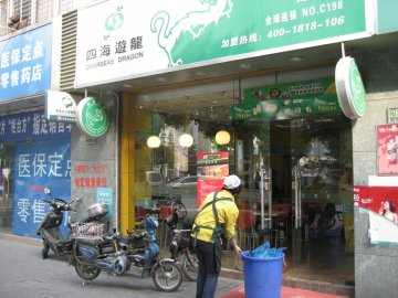 四海游龙这家是人民广场附近的小餐馆,消费不会很高人均大概也就15-20元吧,里面的锅贴是特色,台湾流传过来的美食哦,现点现做所以耗费时间有点长,但是一吃就发现美妙之处了,皮很软糯,里面的肉块也很扎实,甜甜的酱料很讨喜。