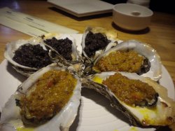喝粥吃烧烤的好去处 无敌lulu等級42013-03-05 關注 生蚝6个起点,每种口味至少点3个。口味很多,都是12米一个。扇贝也是这个价格,那当然点生蚝了!蒜泥口味,比较本色清淡些,味道不错;咖喱口味,好吃!咖喱酱混合着肉酱、淀粉之类的东东调出来的酱料很给力,既有咖喱的香气,又有肉香,整体咸鲜甜微辣,真好吃~~比普通咖喱酱口味更柔和~不过生蚝本身倘若没有老大一坨酱料搭配着吃,微微有股腥味~朋友就很反感那个腥味,吃了2个不动了,我一个人狂吃~黑椒的也是强推,同样给力~这个酱真心推荐,最后配着粥给解决了,没舍得浪费~一直想喝粥来着,于是点了个看起来比较实惠的 鲜蛏文蛤粥,小份 88米。写的里面一斤蛏子 一斤文蛤端上来老大一个砂锅。喝到最后肚皮要撑破了。还有三分之一锅~真心啥都不点,一锅粥都能吃饱了!附送一碟香菜,一碟酸豆角,酸豆角分量足,味道酸咸适中,很可口。蛏子去了壳的,个头不错,文蛤就比较郁闷了。空壳子比较多,不晓得是不是肉都掉下来了,而且里头的肉肉都很小······粥还是非常好喝的,很鲜美,微微的胡椒粉带出的辣味~喝了很多碗~水果沙拉 22米配的不是沙拉酱,而是原味酸奶~水果是圣女果,梨,西瓜和橙子,搭配酸奶味道很清新爽口~烤茄子 一整只 18米口味很多 不过我们选择失误了 选了蒜泥口味太清淡 了!!!油大 口味又淡吃起来就很不香还不如小烧烤店里的香,味道重看来烤茄子一定要选重口味的配料才行…查看更多+ 1以上食評乃用戶個人意見 , 並不代表OpenRice之觀點。讚好分享喝粥吃烧烤的好去处 囧吉香主题餐厅 https://s.openrice.com/KtbT2W0DeG400檢舉 張貼 評分4味道4環境4服務4衛生3抵食