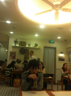 店面比较小~人也蛮多额~有时候会需要等上一会~店面风格感觉还蛮港式的说~透露着一股复古风格呀~人少的时候拍拍照还可以~传统咖椰吐司~味道还是蛮不错额~当中夹着黄油椰蓉还混着咖啡的香气~口感还算丰富~不过小了点~就等于两片吐司面包的说~不过不够香浓啊~花生酱厚片土司~个人不是很喜欢~因为花生酱实在是太厚重了~天热吃就更腻~吃到后面不舒服啊~如果花生酱稍微稀释点的话,口感度可能会更好点吧~至少不会感觉噎在喉咙这边~南阳红茶这个还是满推荐额~蛮好喝的~随便吃吃的小店~价格不算便宜~查看更多
