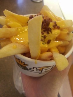 排队的人蛮多,感觉它生意一直挺好的,土豆条都是现炸的。要有足够的耐心等候,点的意大利肉酱口味,口味感觉一般吧,薯条切得都是比较粗,酱料还是很足够的。酸酸甜甜的味道。不过尝个鲜而已。没位置座,买好直接旁边吧台吃完就扔垃圾桶。查看更多