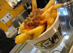 开在来福士楼下,生意挺不错的,地理位置好,交通便利。点的话喜欢点肉酱味的和蛋黄酱味道的。薯条粗粗的一大根,炸好之后香香脆脆的,内里的薯条则是软软糯糯的,配上肉酱,带有丝丝的蕃茄酱的酸味里带着点点肉末,沾着吃味道蛮不错的。查看更多