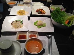 位于五道口的一家韩式料理,价格适中,服务也很周到。烤肉可以自己烤,如果不想自己烤,也可以让服务员来烤,蘸着小料吃,很不错。肉片很厚,看起来也够新鲜。另外,来这里吃饭还赠送南瓜粥,喝完还可以再续,是不是很贴心呢,虽然是免费的,但是味道却没打折扣。另外,还赠各种小菜,所以来这里只点烤肉就可以了。查看更多