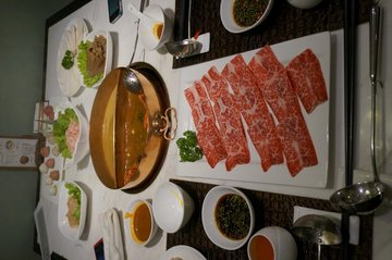做得是比较高端的火锅。印象比较深刻的是有机黑毛猪颈肉,还有象拔蚌。有机黑毛猪颈肉,肉质是比较好的,相对也不会那么油腻。象拔蚌,其实吃口倒真的也不会很老,味道还是鲜美的。人均消费在一百八十元左右,性价比还算适中。