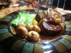 夏娃的小馆做的是德国菜,都是大肉,吃着很过瘾,家庭餐厅别有一番情趣。烤牛腰窝大大的一盘,整个的一大块牛肉,就连口蘑都有半盘子,量非常大。牛肉烤的很多汁,一点焦干的感觉都没有,肉嫩可口,味道非常棒。查看更多