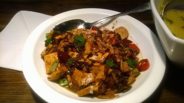 外婆下饭菜还真是下饭菜,外婆菜加上豆干,适当的味道,就是外婆菜少了点;一桶豆腐由老豆腐和新鲜虾仁加上蒜苗等配菜煮成汤水菜,豆腐的卤水味很重,配上虾的鲜嫩,让整道菜鲜上加鲜;酸汤肥牛让我失望了,绝对的没有皇庭那边的好吃,味道差远了,吃起来感觉有点腥味;春卷给我的印象是硬绑绑的,这里的春卷却是外面酥脆,里面鲜肉配上大葱的鲜甜,是一道非常不错的点心;有机花菜也不怎么的,绝对的没有皇庭那边的师傅炒得好吃,每一颗都很大,很硬,没有入味;总的来说,皇庭那边的师傅值得一赞,这边的师傅要向他们学习…查看更多