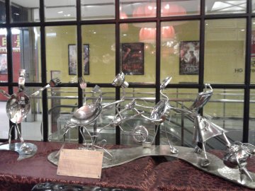 进门处有个这样的摆设,觉得还挺特别的。吃的自助餐。还第一次见到回转式火锅的。一人一小锅,坐在水边的,想吃什么自己伸手去拿就是了。菜的品种还是很多的,但估计人太多,回转上的菜基本都拿完了。还好可以点菜叫服务员拿来就是了。生意感觉挺好的,人特别的多,火锅的味道还是可以的。进门处有个自助的餐台的,有饮料和其他的一些小点心选择,自己根据自的喜好去拿。环境来说,算得上好的了。可以选择再去的。