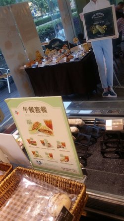 这家店名字叫多乐之日,是我第一听过见过也是第一次来这家店买东东。这家店位于光华路甲14号诺安大厦1楼(近诺安基金大厦), 国贸那边。知道这家店的原因是通过银联钱包的活动,花6元多可以买到一个组合大概30的面包饮品。可是偶去了那家店都已经卖完了,不过可以挑选其他的。店员看起来蛮友善的,据朋友说别的家态度很差。首先来介绍我最爱吃的香葱棒,长方形状,上面撒了很多的葱渣渣,还有点奶油。但是偶吃着却吃到了海苔的味道,口口酥脆啊,吃在嘴里的味道是甜咸,想想都流口水呢。其次,是一款肉松面包,口感松软,我竟然吃出了鱼的味道,肉松很多,很软,但很辣,里面应该是加入的千岛酱,味道不错。还有一款是香肠面包,挺普通的,里面有跟香肠,一般面包店都有吧。再来说说柠檬茶,是热饮哦,而且杯子是绿色的,小清新的感觉,柠檬茶酸酸的很可口。这里还有很多款面包我就不一一介绍了,店内的环境很干净,而且有午餐套餐,均在20左右,一款面包类一款饮品,来不及吃饭,离这里近的话可以来这里买份哦。这里还是由现在很火的韩国金秀贤代言呢。希望大家也就像名字一样多多享乐每一日。查看更多