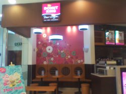 蛮喜欢它家的甜甜圈,只可惜分店并不是特别的多.粉粉的店面看起来就好梦幻的感觉哈,很讨女生的喜欢吧.甜甜圈的口味很多,一一试下来还是抹茶和摩卡口味的最得我心哈.抹茶的味道非常的浓郁,甜度适中,吃起来有种很清新的赶脚.摩卡的味道也不错,偶超级喜欢配香蕉牛奶一起吃呢.但一次不能吃太多,否则会有滴腻,呵呵.