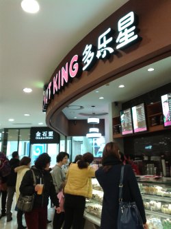 他家也是买甜甜圈的,里面的品种挺多的,而且店面看上去蛮干净的,里面还有卖饮料的.我买了一个糖霜星星,抹茶,巧克力的甜甜圈,还买了杯摩卡,在店里吃的.最喜欢糖霜星星了,上面是用糖粉撒出来的星星形状,不是很甜的,圈圈很好吃,油油的,很香.抹茶的也蛮好吃的,都不是特别甜的那钟,饮料一般般吧.