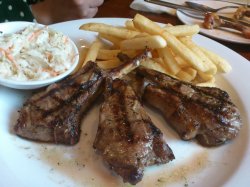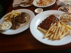 朋友团购的券,找的时候走反了,顶着大风冻死了。不过吃下来觉得很值得啊,东西都超大份,我吃了烤土豆汤,碳烤上等澳洲羊排,朋友吃了鸡肉米饭汤,传统原味嫩肋排,还有亚洲色拉,香辣鸡翅和芝士蛋糕,烤土豆汤很好喝,很浓,亚洲色拉味道也不错,清淡可口。羊排超赞,对肉食动物的我来说心满意足,也尝了朋友的肋排,超级嫩呀,鸡翅也很赞,有点点啦,芝士蛋糕上还有巧克力浆,就是地方有点远,不太方便。