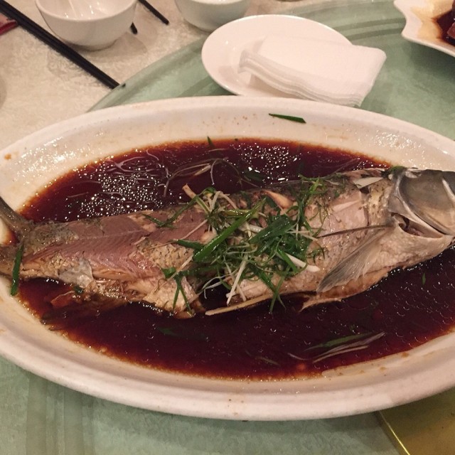 这家店就在樱花园西街,朋友生日请客在这里,我们6人也是在大桌吃的,这家店环境挺好的,很华丽,装修的挺上档次的,周末来吃,人也不多,否则也不会让我们在大桌吃的。他家属于粤菜,但价格没那么的贵,人均70元不到。烧鹅味道不错,皮很焦,肉很嫩,白嘴吃很香。豉汁蒸排骨味道很香,整道菜没有油,都是蒸出来的,而且上面的那层油也是排骨自身蒸出来的,所以蒸菜很健康。他家的甜品味道也不错,榴莲酥好吃,馅很腻,但不甜,外皮焦酥。