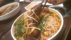 朋友送的秒杀券,刚好点了40元的米线,店家没有歧视秒杀,态度很好。米线很好吃,很滑滑,还有厚厚的牛油在上面。但是觉得米线是属于快餐类的食品,火锅吃起来一直好烫,等上菜等了15分钟,然后吃米线,一直在吹气,一边吃一边吹,但是就是一直很烫很烫,吃到最后也冷不下来。花费了好长时间,差不多一个多小时。像我这样每天闲闲没事干也就算了,要是赶时间怎么办呢。店里还有烤猪脚,但是不想吃了呢,以后有机会可以尝试下下。店里环境不错。