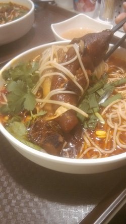 在网上秒了1代20的代金券而且可以叠加因为是新开的店所以比较好找就在车站后面找到了之后找老板娘问了情况券可以用而且是真的可以叠加看了菜单之后觉得好便宜。。可能是有券的原因猪蹄米线才18一份标餐28是豪餐有2只猪蹄味道是火锅米线的风格很大一个碗口味是正宗的重庆味道猪蹄软糯入味霸道惨了