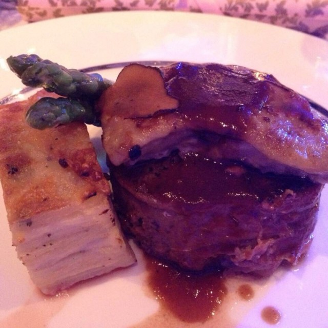 这个厅感觉不算很大,大概放下二三十桌样子,不过这个厅一根柱子也没有,感觉还算大气,不知道在这里办酒一桌大概多少钱,以前偶老姐也在这里办的,看这样子这里还挺受欢迎啊冷菜:@烤麸,这个冷菜算是上海的特色了吧,满常见的,而且味道我也很喜欢,酸酸甜甜的,但是里面的烤麸做的有点硬,相比起来还是黑木耳好吃些@菠萝色拉,他是切成菠萝丁,再拌些色拉酱,比较普通,而且也不能多吃,多吃容易吃饱,后面的大餐就吃不下啦~@辣味黑木耳,这里的黑木耳也是带点酸甜的,但更主要的一味就是辣,虽然辣味的我也喜欢吃,但他这道菜有个缺点就是咸了点,所以相比起来我还是更喜欢烤麸里面的黑木耳@油炸银鱼,不知道普通话怎么叫,我就随便给他取了个名字,不过完全没有外面超市里面卖的好吃,因为太清淡了,这个鱼要吃那种甜甜咸咸的才够味,不过这个鱼好像还蛮吃香的,因为感觉没过多久就看不到她了。。。@海蜇丝,他们家这个冷菜做的好失败啊,我感觉外面的话那种凉拌的海蜇丝总归有点汁水,这样吃起来会比较有味道,他们家这个海蜇丝搞得非常清淡,所以一直到最后都没吃完,感觉都没啥人动么热菜:@烧味三拼,里面应该是叉烧,鸡肉,鸭肉,不过我只吃了叉烧和鸡肉。叉烧的味道还不错,很嫩而且漫入味的,我很给面子的吃了两块,因为他那个不算很油,肥肉对我来说刚刚好,可能对别人来说就太瘦了些。那个鸡肉我也吃了,也算蛮嫩的,但是味道没有叉烧那么入味。鸭肉没吃,因为完全没注意,后来上来了其他,立马被吸引过去了@芝士焗大明虾,这个虾果然够大,可能是我吃过的个头最大的虾了,虽然虾肉还行,不像有些会烧烂掉,但是就是味道进不去,而且芝士味实在是没什么,也看不出这道菜跟芝士有什么关系,连稍许拉个丝都木有的。虾的下面是宽面,还是绿色的,估计是里面加了什么菜的汁吧,虽然味道一般但颜色还比较清新@琥珀翡翠澳带,这道菜的颜色很清新诶,我喜欢的,他一上来我就被绿色的荷兰豆吸引了,吃了几片,然后又看到了白色的某物,我还不知道是什么,随便捡了块尝了下,发现还不错么,感觉像某种海鲜产物,那自然不能客气要多吃几块,看了菜单才知道哦叫澳带。这个澳带吃上去感觉像是比较紧致的鱼肉,有点弹性,我蛮喜欢这种口感的@翅骨鲍鱼炖响螺,这个应该是汤吧,反正里面水很多,那个汤的味道还算不错,比较清淡,不油腻,不过里面的响螺鲍鱼就一般了,估计味道都到汤里面了。本来我还舀了一块白白的东西不知道是什么,吃了一口感觉满嘴悉悉索索的,立马被我吐掉了,看了名字才知道是翅骨啊。。。@鲍汁柚皮扣海参,海参是个有营养的好东西啊,虽然他烧出来以后滑不溜秋样子也很普通,但是这种值钱货当然要多吃吃。感觉吃这个就像是一个鲍汁味的布丁,不过粘稠度比布丁要再高些@麦香脆皮鸡,这个鸡还满常见的,上面有龙虾片我非常喜欢~吃了好几块~很有小时候的味道啊~那个鸡热的时候味道不错,皮很脆,靠近腿那里的肉还蛮有味道的,后来冷掉我又吃了一块身体上的,感觉皮也没那么脆了,而且肉一点味道也没有@美极燕斑鱼,总觉得这个鱼肉一般,不知道是不是时节不太对,不是特别好吃,虽然沾了里面的汤水感觉也比较普通,不是我好的那口@蚝皇珍菌扒时蔬,其实就是娃娃菜+黑木耳,黑木耳体积比较小,所以沾着那个汤汁还算好吃,但是那个娃娃菜个头大,酱汁沾了感觉也没啥味道,太淡了,还是喜欢吃那种上汤的娃娃菜@瑶柱金菇烧伊面,这个上来的时候我差不多已经饱了,吃不下了,但也不能不吃对吧,总的尝尝味道,于是来了一筷子。面条一般性,有点黏糊了,味道也很普通,所以后来就没再吃,最后剩了好多@美点双辉,上面有小蛋糕和饼干,饼干没吃到,估计味道不错,被人家都抢了~~~那个小蛋糕就是普通的清水蛋糕,但做的不是很蓬松的那种,比较填肚子,但我还是吃了两个。。。因为后来菜都冷了但嘴巴还是馋所以。。。@红枣桂圆莲子花生羹,这种东西我是不太爱的,不过里面有银耳,所以我决定喝一小碗,发现还算好不是很甜,但坐在我旁边的同学还是觉得太甜了,看样子我对甜食的hold住程度还行@精美水果盘,最后虽然我已经很饱了,但是看到水果放在我面前我还是没忍住一直在那里吃啊吃,感觉一半都是我干掉的。。。里面有哈密瓜西瓜帮橙子,我还是喜欢吃甜一点的哈密瓜然后就是西瓜了他们家的菜好像吃下来感觉一般,可能是那些菜正好也不对我胃口,不过吃还是要吃的~要吃回本~