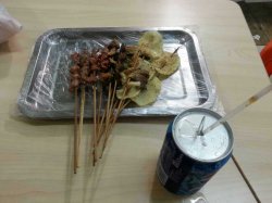 大成海鲜烧烤 ,主要是来吃烤扇贝烤生蚝的,顺便买了烤肉串和烤年糕,他们家的盘子喜欢用塑料袋抱起来,这样就不用去洗盘子了,呵呵,好偷懒的方法哦,里面的烤生蚝很大的,而且很新鲜的,价格不贵,买的人还很多,烤扇贝也很香,新鲜的我都喜欢哈。烤肉就一般般了。