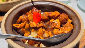 順德豉味祿鵝 / 臘味煲仔飯 / 鮑汁海皇豆腐 / 古法鮮果咕咾肉 / 大良姜撞奶 / 上湯桑葉苗