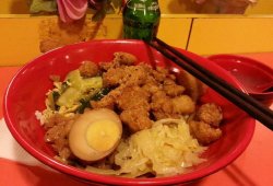 挺好吃的一家店,闻起来很香,就是店招牌不是很醒目,跟其他家的店招牌长的差不多,盐酥鸡味道不错,点的盐酥鸡饭,米饭不是很多,但是够吃了,里面搭配的小菜倒是蛮爽口的,很好吃,其他的蔬菜就不是很好吃了,蔫蔫的,感觉熟过头了。查看更多