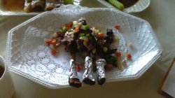 他家的港式小点心做得很突出,我最喜欢吃的要数鸭下巴了,一盘3个,数量不多,但少而精。他家的鸭下巴上面还有很多配料,像红、青椒啦,花生啦,反正上面顶着一大堆,也可以吃的,而且很香,鸭下巴很有嚼劲,味道也很浓,而且脆脆的。查看更多