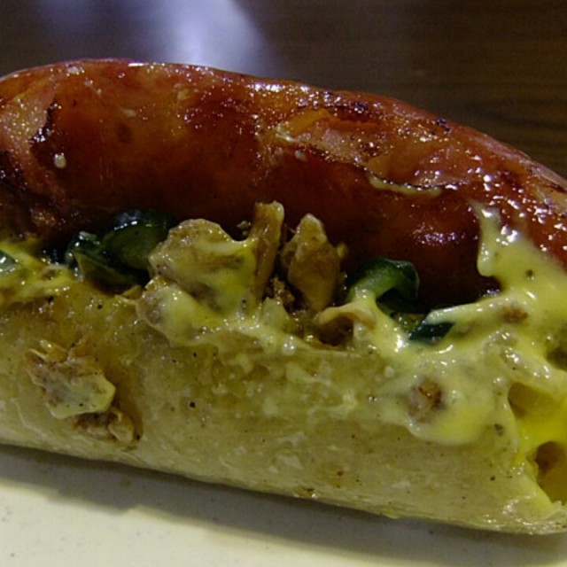 这个台湾传过来的食物非常的收年轻人欢迎,其中的大肠其实就是糯米肠,小肠就是香肠之后用糯米肠将香肠包裹起来上面浇上不同的酱料来提味,因为糯米的关系所以吃上去外糯里软的香肠烤的略带油水不过入嘴之后会被糯米吸收所以吃起来不会油腻,一个就能吃饱还是不错的。…查看更多