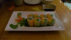 朋友推荐的这家店,正好附近有家店就去试试。外面看着不起眼,里面风格倒是挺特别的。周末晚上人还真不少。二个人点了三个菜。先上的芒果鲜虾卷,很爽口的一道菜,酸酸甜甜的很开胃,第二道招牌菜大茴香牛肉粉很入味牛肉很嫩,口味偏清淡。最爱酸子鱼了,价格虽然不亲民,但是味道真不少盖的,外脆里嫩,再加上特制的酱汁,大爱啊~菜点的不多不过色香味俱全了,满足。…Read More