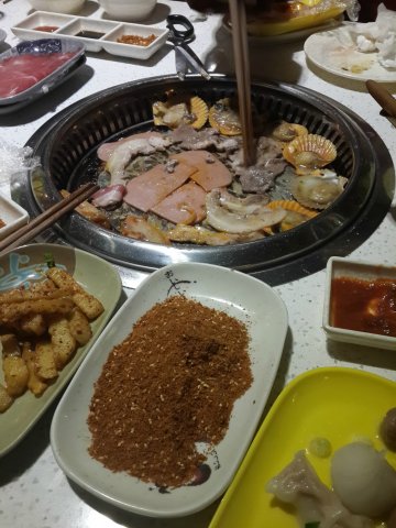 向来就不太喜欢吃自助餐,更加不喜欢需要自己动手烤肉烤菜的自助。不过因为朋友聚餐,所以随大流来的这家。记得这个位置以前是一家牛排店,不晓得啥子时候就变成了现在这家“大韩自助海鲜烤肉”。开在新中兴二楼,一楼的入口看起来小小的很不打眼,以至于我路过的时候直接就略过去了,最后还打电话问朋友应该怎么走上去。不过楼上的餐厅还是挺宽敞的,环境看起来还是干净。只是卫生间很不喜欢,是男女共用的,这样子就显得很脏。而且运气不好就要排队,老是有男的要躲在里面抽烟,恶心死了~我们人多,所以拼了2桌。团购的~~~单人自助49.9元/人,16:00-22:00需到店另付5元,所以就是55元/人。晚上去吃的,菜品不算太丰富,不过菜品供应和补给还算迅速及时。团购内容上虽然写的是“饮品:意式咖啡、红茶、奶茶、牛奶系列、可乐、芬达、勇闯啤酒扎啤等无限量供应”,不过实际上也就只有些碳酸饮料、橙汁、啤酒免费的也是比较廉价的那种,珍珠奶茶里面木有珍珠,而且淡而无味相当难喝。粤式蒸点也一样都没有看到,朋友些以前来吃过的,她们倒是说以前粤式蒸点这些都有,而且品种还比较丰富。自己动手烤肉,总是觉得烤出来的不晓得熟没有熟,而且味道也不怎么好吃。生蚝和扇贝都有,我们也烤了,但是烤得再久,吃到嘴里还是一股腥味完全没发入口,只能说是在浪费粮食。掌中宝味道还不错,牛肉、鸡翅和五花肉也挺好的,搭配生菜一起吃去油腻。反正没有烤好多菜品,就觉得胃里面胀胀的了,估计也是其他杂七杂八的东西吃太多。小伙伴们倒是吃了很多他家的蛋挞,味道中规中矩吧。不过蛋糕类都不怎么好吃,偏甜腻而且感觉比较劣质。我倒是吃了不少水果沙拉,红糖糍粑也挺喜欢的,只是都是放冷的那种,口感就不是特别的完美了。总体来说就是随便吃吃的一家店吧,味道中规中矩的,个人不喜欢,也不推荐。 …查看更多