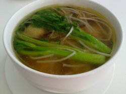 鲜虾净云吞,还蛮好吃的。汤水看着几乎是清澈见底,喝起来味道还蛮鲜的。上面漂着两根青翠的芥兰,很新鲜的样子。还有几丝豆芽。云吞个个饱满,收口的地方也捏的很紧致,像一个个胖胖的小金鱼。咬开后,里面都是整虾,蜷在里面,很大个。皮子很薄,包裹得鼓鼓囊囊的样子。馅有弹性,又新鲜。查看更多