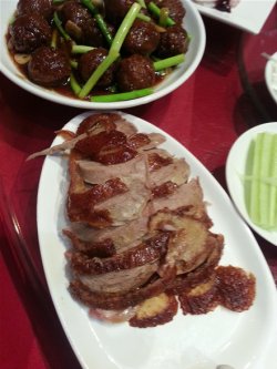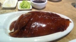 来这里就是冲着烤鸭的,住的离天通苑比较近,找了个时间就过来了,烤鸭比较贵一点吧,一百多一些。 味道还是不错的,外面一层皮是脆的很焦,里面很嫩,也很入味儿,鸭饼卷着吃还是挺好的,酱料的味道都不错,鸭架做成了椒盐鸭架,要单加不到十块钱加工费,还好味道不错。其他菜也有好吃的,铁板酱香茄子,宫保鸡丁,金鸭梨形状很可爱。菜的味道整体都不错。环境也还好,旁边餐馆也比较多。 最近网上有团购烤鸭貌似都半价了,打算再去吃一次。查看更多