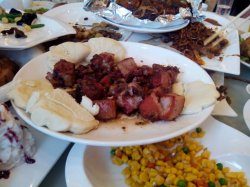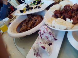 当时在网上团购了38元的烤鸭套餐,两个人吃一份烤鸭肯定是不够的,我们又要了一份海鲜汤,还有一份素菜,一份银耳汤,一共三个菜,一个饮品。个人感觉他们家的烤鸭不太好吃,有点儿老,不太新鲜,不知道是不是团购的烤鸭跟平时的烤鸭不同呢???菜非常好吃,最最最爱的是银耳汤,推荐大家饮用,价格貌似有点高,20多元吧,但是真的值得品尝,大力推荐!!!查看更多