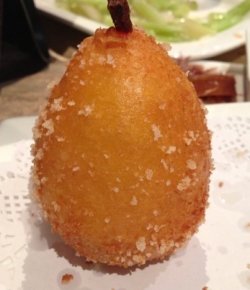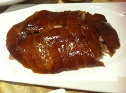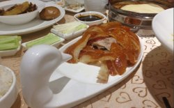 餐厅: 大鸭梨烤鸭店 位置: 朝阳区朝阳大屯路(近南沟泥河公交车站)点评:大鸭梨的分店很多,装修都比较大气,虽然算不上什么豪华,但在家常菜馆里算是可以的,很适合搞宴请的。烤鸭做得中规中矩吧,外皮比较酥里面肉也比较嫩,盘子很漂亮,剩下的鸭子架做了鸭汤,比较清淡,不油的,小料做得也较全。干锅茶树菇,虽然是干锅类,但这里做得辣度不够,算是微辣吧,比较符合大众的口味,里面份量不少的,价格也实惠。金鸭梨3元一个,个头很大,浇了糖,很甜也很脆,饭前饭后吃都不错,很符合店名,哈哈。人均消费65元,挺便宜的。…查看更多