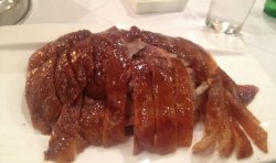 装修非常不错的一家店,店面很宽敞,店内给人的感觉还是挺豪华的,很干净,给人感觉挺舒服的。在这里请朋友吃什么的,还是不错的。店里生意很好,饭点去的话人很多,不过门口还是挺宽敞的,有免费的停车位。去大鸭梨吃饭,烤鸭当然是必不可少的菜,这里的烤鸭味道非常不错的,色泽看着非常舒心,鸭皮烤得焦黄焦黄的,看着就让人很有食欲。烤鸭片完之后,摆放得也很漂亮。特别喜欢用烤鸭皮蘸着白糖吃,特别的香,但是千万别吃太多哦!不然会太腻。烤鸭肉烤得很入味,蘸上酱后,和黄瓜、大葱一起,用春饼一裹,吃起来又香又爽口,很好吃啊!他们家的鸭架汤,个人感觉做得不是太好喝,建议大家可以做成椒盐的,吃起来焦焦、脆脆、香香的。他们的大拌菜味道感觉一般,蔬菜倒是挺新鲜,吃起来比较爽口。里面的花生很好吃,嚼起来很香。大鸭梨的香辣土豆丝很有特色,堆着高高的一盘。土豆丝像是被炸过的,吃起来焦焦的,辣辣的,感觉还不错。就是感觉稍稍的有点儿腻!咸蛋黄焗南瓜做得中规中矩,南瓜很甜,也很软,咸蛋黄做的外皮,吃起来焦脆,带着蛋黄的香味,不错!总得来说,还是不错的一家店。环境不错,价格比较便宜。服务也还不错。…查看更多