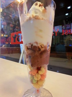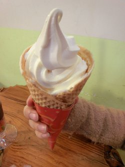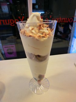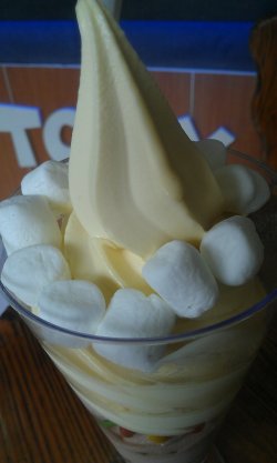依稀记得小时候吃过爸爸买的天使冰王的甜筒 在南京路上边 当时还木有哈根达斯莱TCBY算是高级冷饮哦 价钱不便宜的 后来长大了 发现居然退出中国市场了伐~ 晕倒~再后来 TCBY再度进军大陆市场但是 在上海的这家店真的是小得可以 门面非常小 大概有两个小台子 但是位置很挤一般大家也就带走吃吃了~而且 周围的店铺都是那种很简陋的小饭店或者早餐铺子 想不通这个冷饮业的“巨头”怎么会选址在这边~不过店员说旗舰店很快开张 在某个新开的shipping mall里边的(月星广场?) 应该比较华丽回归了吧~言规正传 慕名来追寻回忆 点了一个芭菲杯可以选三种配料 两种口味酸奶冰淇淋哈哈 选了果然多 MMs巧克力豆 还有棉花糖原味的酸奶冰淇淋很细腻很细腻 而且口感没有冰沙感 是完全没有!要知道我吃过的酸奶冰淇淋都是有一点点冰沙感的 (比如yoba 比如anna banana 等等~)因为毕竟不是奶油冰淇淋 酸奶冰淇淋需要乳酸菌 所以口感会粗糙一点点的但是天使冰王做得到完全没有冰沙感 完全就是普通软式冰淇淋的质感 厉害!不过和yoba等相比 TCBY的酸奶冰淇淋的酸味不是很明显 是微微的酸奶味(yoba是完全的光明酸奶味 但是我也喜欢 很清爽) 所以 TCBY的酸奶冰淇淋给我的感觉是浓郁和清爽并存~ 搭配棉花糖一起入口很甜蜜柔软的口感 满好吃的~果然多是放在杯子的底部的 挖上来伴着冰淇淋一起吃 脆脆的口感遇上绵密的冰淇淋 又是另一种风情~ 不错不错~唯一每种不足的是容器 不是玻璃杯 是某种很轻的塑料质感 这个要扣分~服务态度很nice 还送了一张10元抵用券 可以下次来用~店铺里边有个小电视机 滚动播放TCBY的广告 但是是那种介绍原料啊、工厂啊、做法啊什么的美式广告,随便看看还蛮好玩的~…查看更多