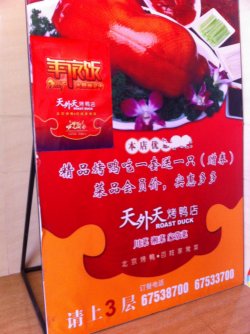 天外天烤鸭 地址位于丰台区马家堡西路15号时代风帆大厦3楼(近地铁4号线角门西站A出口)。烤鸭和炒菜都有,而且还有麻辣香锅,很时髦的菜呢。那个麻辣香果都是搭配好的蔬菜和肉,没有其他可选择的,不过味道还不错,里面的午餐肉味道很好,麻辣的,而且很软嫩。查看更多