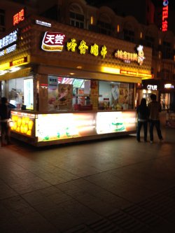 以前没听说过天尝里脊,也就吃过烧烤摊上的里脊肉,我觉得超级好吃,里脊肉感很好,一丝一丝的肉很清楚。后来听说了天尝里脊,听这个名字就觉得很霸气,当然要去试试啦,偶然的机会经过大市口,看的有的卖,就在世纪联华超市下的肯德基侧边,果断跑去买点尝尝呢。店面很小,就跟私人烧烤摊似的,只是有个小门面,更加正规一点,看着也干净许多,但是油炸的东西,在所难免的也干净不到哪去。我看除了卖里脊,还有骨肉相连等肉串,还有奶茶卖的,应该是用粉兑出来的。天尝里脊是10元三串,还蛮大个的,但是稍薄,吃第一口,觉得那肉有点黏,不像是正真的里脊肉一丝一丝的,估计是添加了东西的,口感还是不错的,可以买来尝尝和烧烤摊上的对比下哦。查看更多