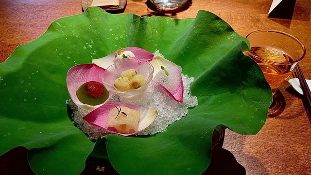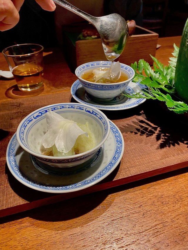 有冇諗過北上食中式素菜都可以fine dining?今日嚟到卓悅中心,行吓行吓就比我發現咗一間素食界天花板 — 天嶼水·茶蔬,係一間上榜「2024黑珍珠餐廳指南」嘅餐廳,當然要入去品嚐一下佢哋嘅菜式啦!今次先嚐晚餐18道菜每位688元人民幣餐廳仲會送上3道隱藏菜式環境十分之愜意寧靜每道菜式都用上時令食材做到不時不食可見師傅嘅匠心獨運~節氣套餐 July Menu~黃梅漬蓮藕佛手柑蓮子楊梅苦瓜芥末籽茭白椒麻菱角香水蓮花湯包燒豆腐香茅芭蕉蕊百香果芭蕉芯姜花冬瓜炭燒野生菌玫瑰三華李二零零零年孫儀順六安黑茶雞油菌泡飯時令鮮疏黃皮慕絲三十五年台灣金萱老烏龍最欣賞其中一道隱藏菜式,絕對係畫龍點睛之作!融入日式烹調手法,運用左天婦羅炸物做法,先係秋葵內釀入雪耳、菇菌等材料,表面再沾上炸漿非常之薄身,炸油明顯上新表面炸至微黃顏色,外脆內軟餡料入口爽脆豐富,再配上酸酸甜甜自家製柚子醬汁平衡油膩感,讚👍🏻當然不得不讚賞,餐廳每一道菜式都仿如藝術品一樣精緻奪目,善用食材本質以及味道,精雕細琢絲絲入扣,可觀可感可嘗!…查看更多
