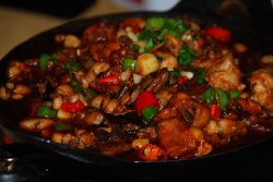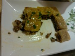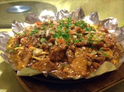 位于东四环之外的天得湾酒楼,虽然地处偏远,但是临街的招牌还算明细。共两层面积不小,门口有充足停车位子。还有个小哥在门口烤串,炭火很旺,下次来可以试试。尝试的可都是镇店之宝的大菜了。天得湾清香鱼以店名命名,一听就知道店家独创。据说是先把鱼蒸七分钟,之后再行放入锅内,加入老鸡汤,水芹和香菜,边煮边吃。很大的一锅非常震撼,上面盖满了水芹菜。鱼肉很嫩,煮过一会的汤融入鱼的味道更加鲜美。但是用的是胖头鱼,还是身子肉少而鱼头做剁椒的会更好点吧。荆沙牛三鲜也是一大特色,里面都是牛的上好部位,加入豆皮和莴笋洋葱等,同样是个汤锅,很深的颜色炖煮的比较入味。据说汤汁可以拌热干面。土灶三宝是个干锅,原来是鸡块、鳝鱼和牛蛙一起烹制的,加了很多小米椒,比较辣些,也更有滋有味了。头一次吃这三种肉放在一起的菜,很有新意,不过略咸啊。比较喜欢银纸酱滑牛柳,酱汁果然美味,淡淡的孜然、微甜微辣的酱汁包裹这嫩滑的牛柳片,撒上少许葱花,而下面竟然是热干面,这伴着上面的牛肉一起吃,真是无敌美味。腊八豆蒸猪尾则配了荷叶饼,豆子已经软烂,又是下饭的菜。小圆米酒羹的酒味不明晰,小圆子很可爱,再甜些更好。武汉三鲜豆皮也比较创新,是用了糯米香菇,外面用豆腐皮覆盖的方形主食,软糯的很。就是不够突出香菇的鲜。菜量都不小,人多的话性价比很高。查看更多