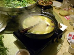 刚刚回来,参加了活动,场面十分火爆!我们出发的很早,却由于路上的种种耽搁,傍晚6点才赶到那里。一进门,满屋的美女都围在一张大圆桌旁做祈祷状,看样子就是在等我了!桌面上很震撼,这可以从照片上看出来。湖北菜属于咸鲜辣口儿,相比那些辣的上房的菜式而言,湖北菜属于很容易接受的一种。个人很推崇热干面、清香鱼跟大麻团。清香鱼肉质鲜嫩、鱼汤爽滑,热干面油而不腻,大麻团香糯可口。还有美女在旁不时对各色菜品做推介,这顿饭吃的十分爽!