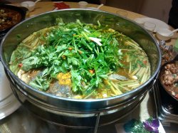 选个纪念日是因为那天是末日,跟几个朋友一起去等待末日的来临,呵呵店里的清香鱼上来一个直径75公分的大烤炉,霸气,呵呵,牛三鲜挺不错的,尤其是那个汤汁浇在武汉热干面上面,辣味十足,很是喜欢,店里的环境还可以,卡座我比较喜欢,所以一直去卡座,忘了告诉大家,我经常去这家店,主要还是很实惠,竞园里面停车收费,但是这家店可以提供停车证,哪怕你是去竞园里面游览,只要去他家吃饭,就可以拿停车证,就可以再竞园里面免费停车了,不过,也不能吃的太少,毕竟人家的停车证也是花钱买的不是,将心比心,竞园里面只有他家提供免费停车的,不然你就五块钱一个小时出门的时候缴费吧呵呵,不过说真的,这家店还是挺实惠的,四个人,一个清香鱼,一个牛三鲜,一盆热干面,两个小炒,才200多一点点,人均也就50吧,挺实惠,而且菜品也都很不错查看更多