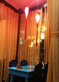 环境很精致的一家餐厅,虽然复古,但是湖蓝的搭配又觉得整个餐厅特别有活力。这家店就在天通中苑华联商场4楼,逛街顺便吃饭,挺不错。非常喜欢这道七爷叫花鸡,58元一份,还带个小锤子,挺好玩的,把外面那层泥给凿开,里面的鸡肉焖的特别软烂,个别的小骨头都焖酥了,还挺入味的。