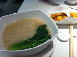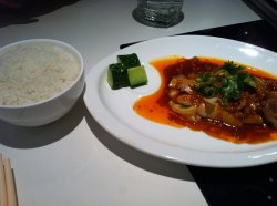 这家是逛东方新天地的时候去的,第一次去这家餐厅。本不想去这家吃的,看似里面的消费都不低,但是很想吃粤菜,所以还是进去了。店内的环境确实还是挺不错的,港式餐厅的环境都比较小资,拿着菜谱看了看,价格还算不贵,在这种地方感觉价格算是评价了。首先说叉烧这个是必定的,虽然很肥但是一点都不腻,怎么吃都感觉吃不厌的一道菜,也是每次去港式餐馆必点的一道菜。点了半份22块钱,然后点了一个咖喱鱼蛋,这道菜应该是这家餐厅的特色吧,我个人觉得挺喜欢的,咖喱味很重,鱼蛋也很弹,值得一试,服务员说这个菜点的人很多。然后点了一碗米线,这个很鲜,口味稍微的淡了一点,不过味道还是不错的,然后点了一个豆腐,麻辣口味的,因为感觉都很清淡的话就不下饭,一定要点一个下饭的菜。这个菜还不错,挺下饭的,也不算是狠辣。味道:粤菜主要的特色就是比较清淡,做的比较精致,不会像北方菜的分量那么多。价格:还好,两个人点了三个菜一个米线一共花了一百四十多块钱,感觉在这种地方吃饭这个价格还是能接受的。环境:很小资的环境,不过这是一般港式餐厅都具备的,环境很舒服。服务:服务也很好,但是要说的是上菜的速度真的是有点慢了,希望这点以后可以加强。总结:喜欢吃粤菜的可以去这家餐厅试试,我个人觉得还是不错的,有几道菜还是有亮点的,而且地方也很好,正好逛完街吃饭的好去处,价格也很合理,两个人一百多块钱就能搞定,所以我个人还是比较推荐这家餐厅的。附图: 1.门脸 2.麻婆豆腐 3.米线和咖喱鱼蛋查看更多