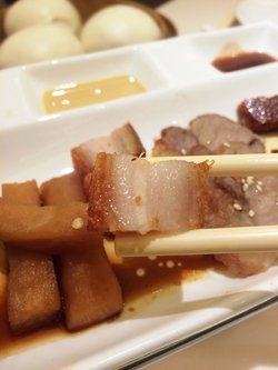 装潢还是港式风格,明快简约,服务也不错,热情周到。乳猪小天王,名字起的萌萌的,不过端上来一盘摆了半个猪头有些怕怕的,不过烤乳猪的肉肉好好吃,外焦里嫩,香香的不腻。双色鱼头,这次感觉肉太少了,剁椒的那半比较入味好吃,香辣下饭。清蒸的那半味道太淡 了。干炒牛河依旧好吃,肉肉不少,河粉软烂不干,油量也控制得好。