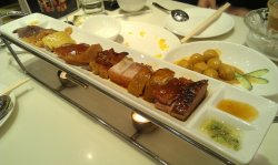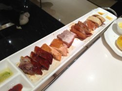 太兴餐厅位于和平区南门外大街,中粮大悦城北区3楼。坐公交车的话,到南门外大街站下,840路、657路、635路、855路等等,很多公交车都从此经过。地铁2号线鼓楼站下车也可以到达。开车的朋友可以把车停在大悦城地下停车场,免费的哦。太兴餐厅宽敞整洁,装修的非常漂亮,各种漂亮的饰品,把餐厅妆点的非常温馨,优雅。太兴餐厅属于粤菜系。推荐腊味八宝拼盘。分量可以根据自己需要自己选择,2人份,3人份,都可以。对于食肉动物的我来说,这个是我的最爱。八宝拼盘分别是乳猪、烧肉、海蜇、烧鸡、叉烧等等。同时配四种不同口味的酱料,根据自己的爱好,自己选配。乳猪外皮酥脆,内里的肉,鲜嫩多汁,吃在嘴里,口感非常的丰富。蜜汁叉烧的,肉质细嫩,甜甜的,口感好,而且不油腻。冻奶茶是放在冰里端上来的,冰冰的、凉凉的,而且奶香浓郁,喝在嘴里,有一种很香,很丝滑的感觉。推荐!大兴餐厅,人均75元左右。查看更多