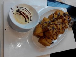 这次这个下午茶团购太给力了,2:00准时进店还有一个位置,而且对面坐的都是老爷爷。我们桌一共三个人,选了:冰淇淋朱古力西多士22元:好完美,下午茶的甜点就是要这个样子!美貌与美味兼有,而且分量也很足。用多士站着冰激凌,真是太好吃了。凱撒沙拉32元:生菜正常,面包块正常,但是里面放了很多肉脯的丁,加上撒的芝士粉,味道十分平衡。沙拉酱用的是正常的那种,但是放的不多,还是很健康。黃金奶醬多士22元:和冰激凌那个就是造型不同,也很港式,分量很足哟。開胃柚子蜜(熱)16元:朋友A点的,看着不错,一咖啡杯。濃情香蕉奶昔20元:朋友B点的,看这个超值的啊,一大杯。太興香滑奶茶(熱)20元:我点的,店名奶茶,茶叶味道比较重的那种,但是口感还比较细腻。上的有点慢,香港那种慢悠悠的感觉,但是味道和摆盘都很有水准,性价比确实很高!查看更多