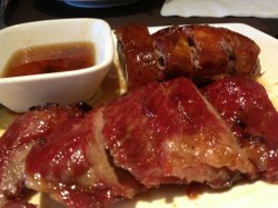 太兴餐厅位于来福士购物中心里,购物完可以到这里休息吃饭,一般周末吃饭的点儿排队的人会比较多。叉烧、叉烧品牌、烧鹅……都是这家的经典菜品。我要了一份拼盘儿,里面的叉烧肉和鹅肉都很好吃,但是叉烧稍微有些紧,鹅肉更加松软。旁边的酱料是微甜的,里面貌似有蜂蜜的成分。一盘子里的肉量很足,如果搭配一份米饭,也是很不错的选择。查看更多