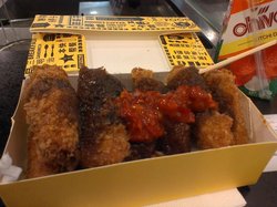 冲着名字去吃的,人还满多的,点了招牌奔跑的猪排,挺嫩的,但一块挺小滴,酱点了日式的!随便吃吃还不错,但是性价比觉得不是很高啊,一块猪排需要15元,但是我看这家传统的炸猪排好像很大,价格也想对实惠点,这个下次可以尝试看下的,地瓜和臭豆腐店员也推荐,但是是吃过午饭去的,就没点这么多