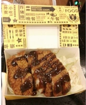 我格广场B1下的美食街里新开的一家店铺,尝新鲜了。店铺的装修上,点缀了很多小时候熟悉的题材。点了店里人气最高的本帮甜辣珠宝盒,8块猪排浇上了甜的酱汁和辣酱。可惜并不能很喜欢这个味道,感觉不是很能打动我的味蕾,倒是垫在下面的甘蓝菜,混合着酱汁的味道不错。