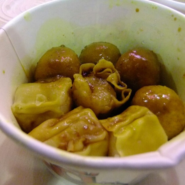 这家店目前为止就日月光有,老板是个女的,听说是香港人。买了份咖喱鱼蛋吃,8元就5个,很贵哟。鱼蛋挺嫩的,非常Q弹,有弹牙的感觉,咖喱味道感觉和油咖喱没什么太大的差别,就是鱼蛋的品质比较高,应该没加什么面粉。